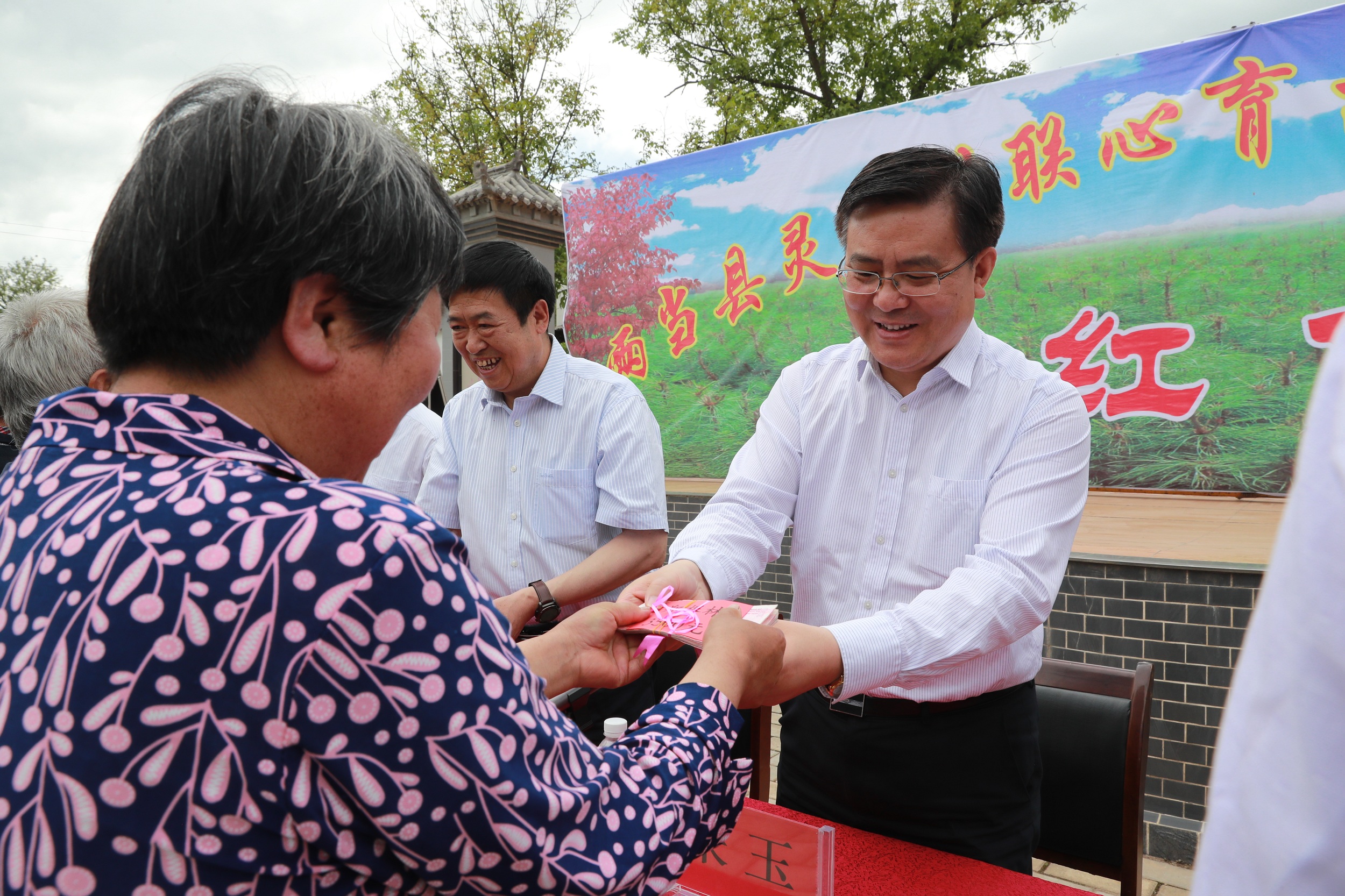 在杨店乡灵官村,朱玉出席了灵官村联心育苗农民专业合作社分红仪式,并为村民发放了分红“礼包”。据了解,2018年灵官村联心育苗合作社本次分红总资金额近70万元,全村146户村民又一次收获了产业分红“大礼包”,每个群众脸上都洋溢出幸福的笑容。朱玉在讲话中充分肯定了灵官村精准扶贫工作所取得的成绩,也对今后致富奔小康提出了新的期望。