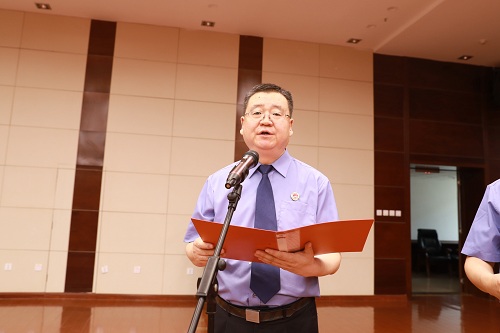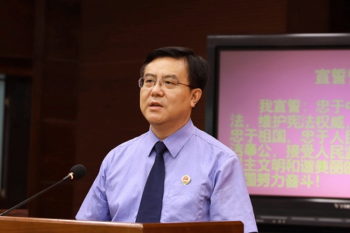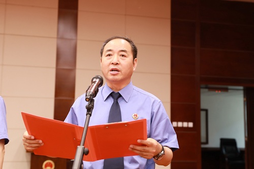 举行2019年新晋升等级员额制检察官、新提拔处科级干部宪法宣誓仪式,检察长朱玉监誓并作讲话。