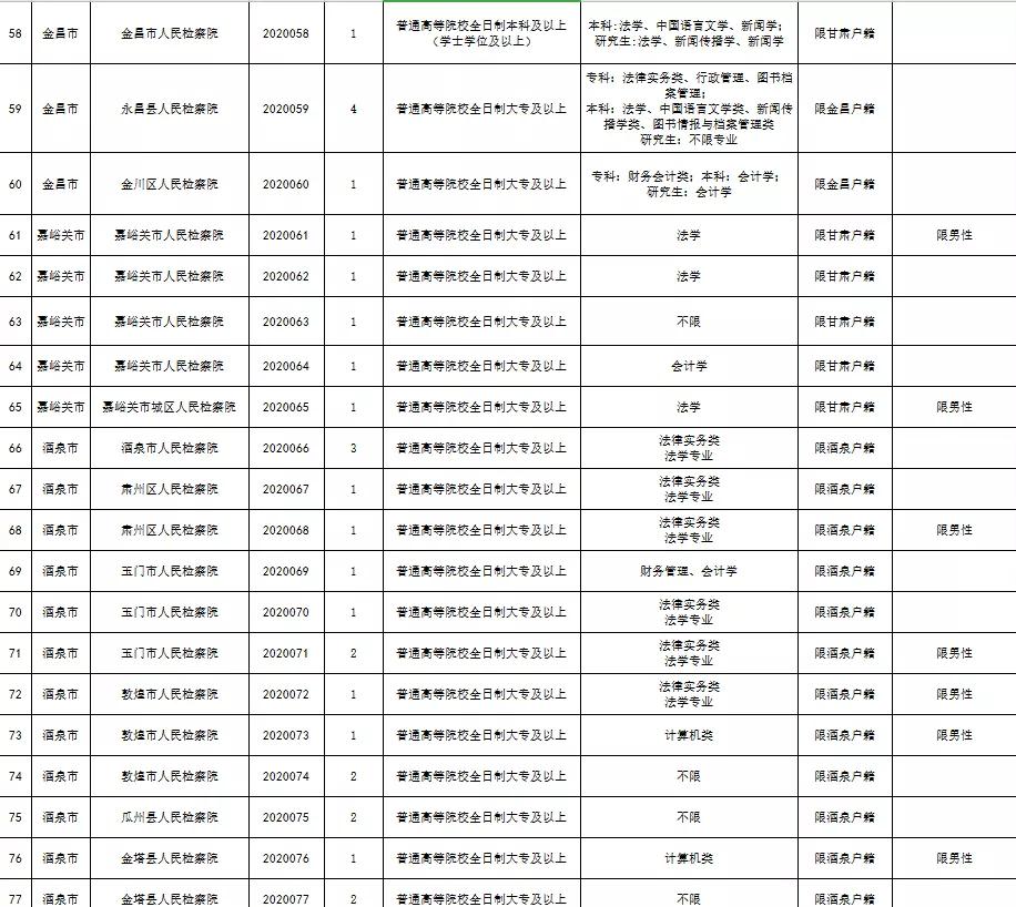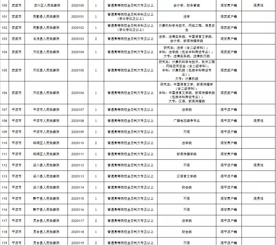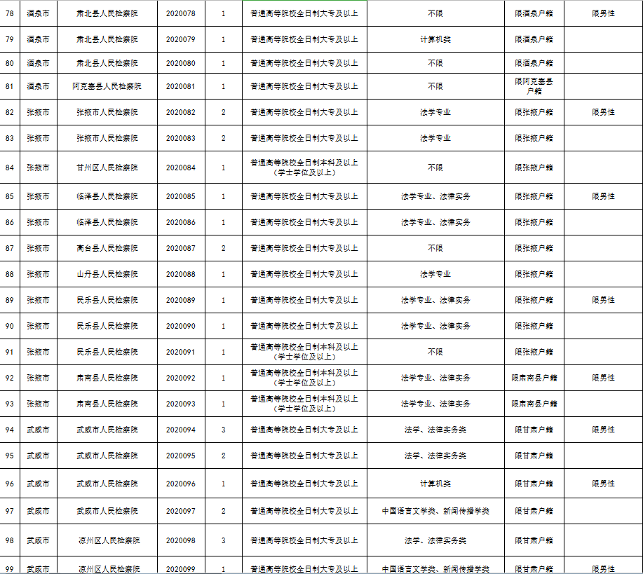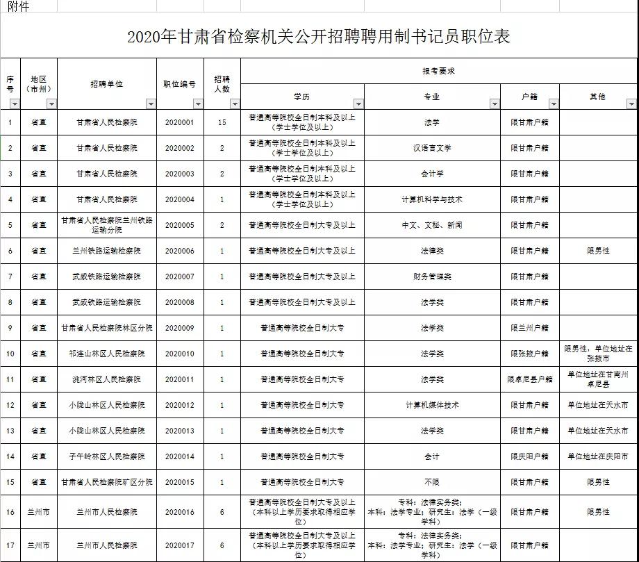 附件:《2020年甘肃省检察机关公开招聘聘用制书记员职位表》