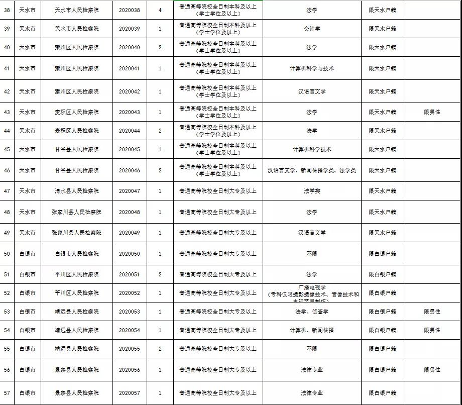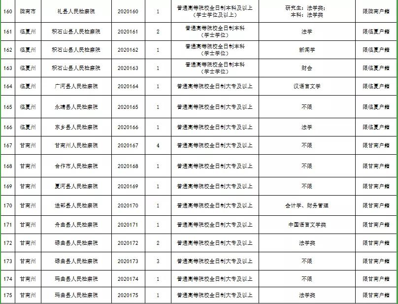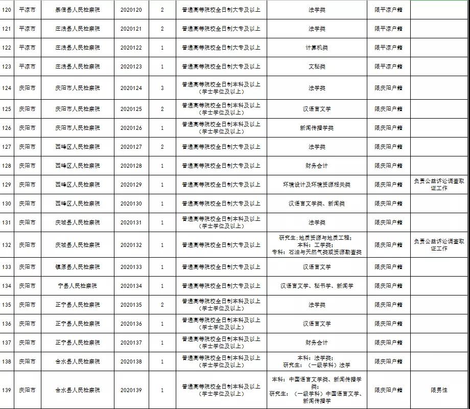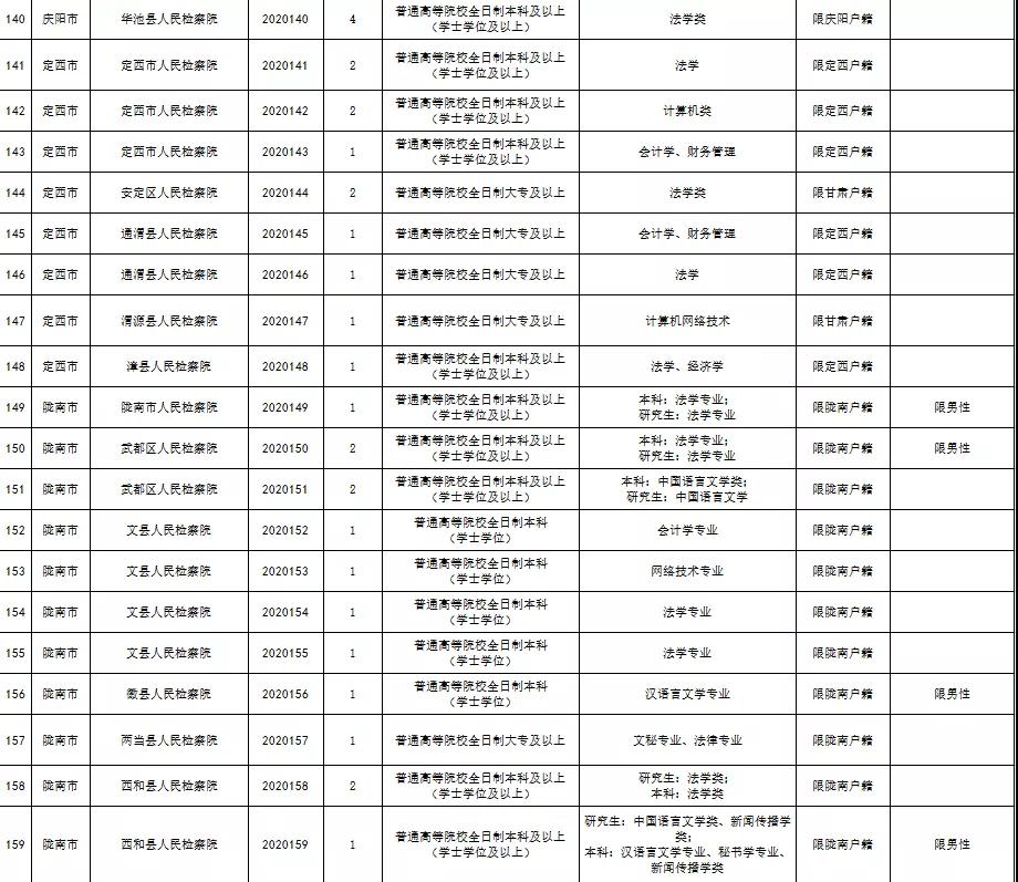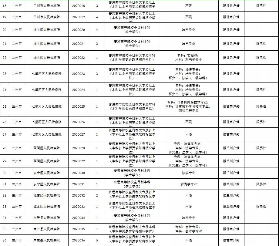 附件:《2020年甘肃省检察机关公开招聘聘用制书记员职位表》