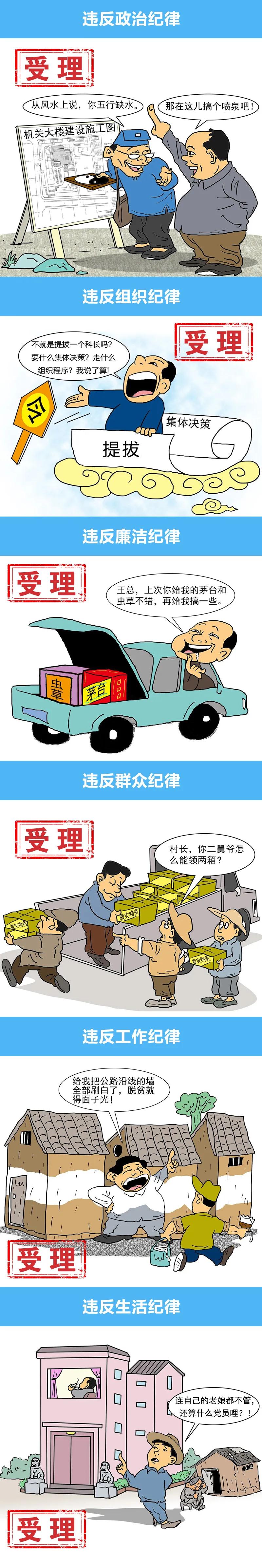一是反映党组织、党员违反政治纪律、组织纪律、廉洁纪律、群众纪律、工作纪律、生活纪律等党的纪律行为;