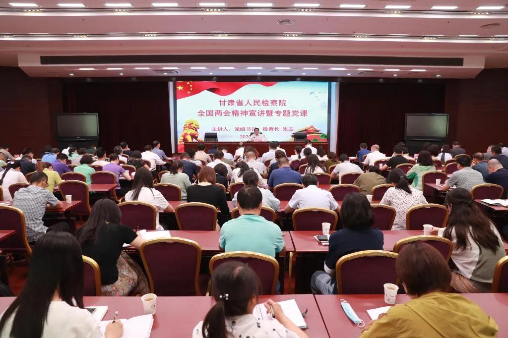 党组书记、检察长朱玉结合学习贯彻习近平总书记在全国两会期间系列重要讲话精神、全国两会精神及全国检察机关学习贯彻全国两会精神电视电话会议精神,以《盯紧看牢,狠抓落实,以两会精神推动全省检察工作创新创优发展》为题,为全院党员干部讲授了一堂生动的专题党课。朱玉逐一对习近平总书记两会期间的重要讲话精神、政府工作报告、全国人大常委会及“两高”工作报告、《民法典》、“涉港问题决定”、全国政协会精神进行宣讲解读,谈了自己的认识和体会。