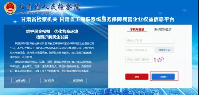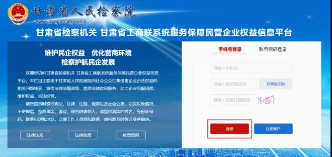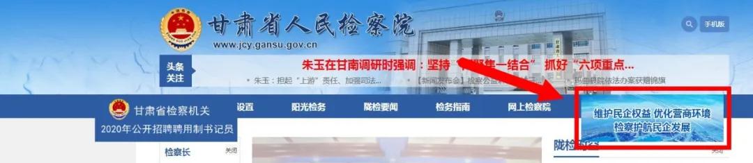 官方网站,点击浮窗 甘维护民企权益 优化营商环境 检察护航民企发展,进入登陆页面。