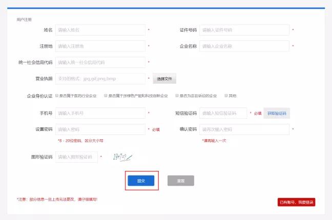 特别注意:注册信息一旦上传无法更改,请仔细填写!