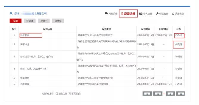 点击“反馈记录”可查看已反馈问题具体办理情况。