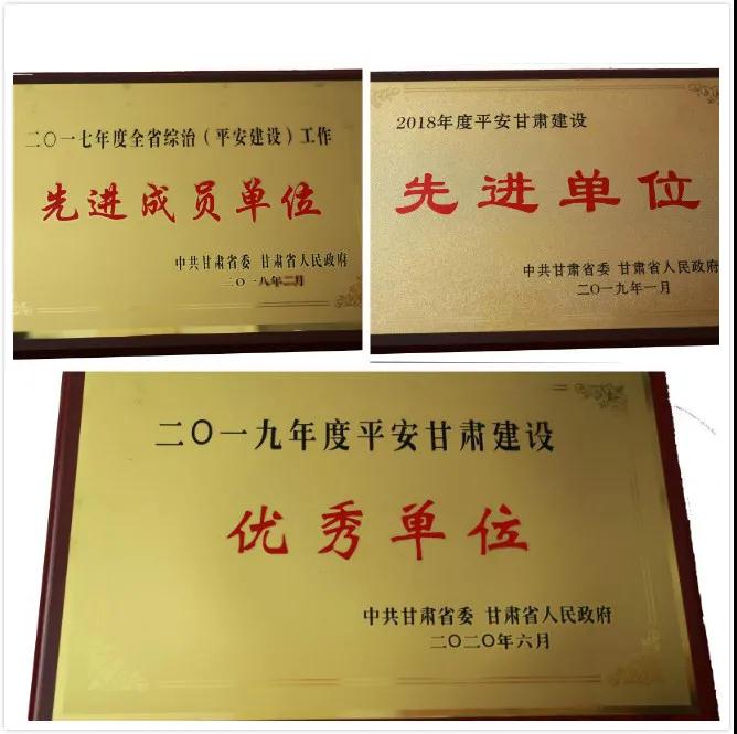 2020年8月10日,在宁卧庄宾馆召开的“平安甘肃”建设责任制落实推进会上,甘肃省委、省政府对获得2019年度平安建设优秀等次的38家单位进行了表彰,其中,澳门彩