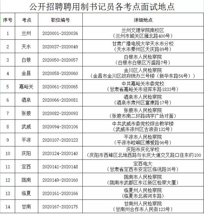 2020年甘肃省检察机关公开招聘聘用制书记员面试定于2020年8月29日进行,现将有关事宜通知如下: