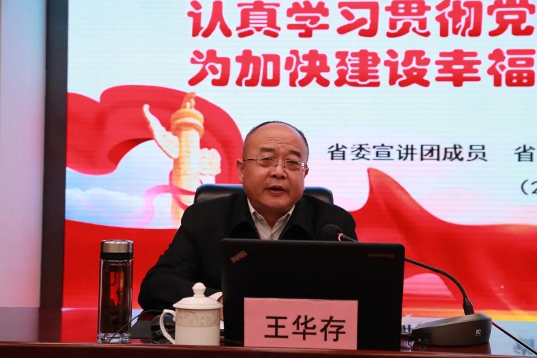 王华存从十九届五中全会的重大意义、增强学习贯彻的自觉性使命感,深刻认识进入新发展阶段的重大意义、有利条件和重要特征,准确把握2035年远景目标和“十四五”发展的指导方针和主要目标,科学把握“十四五”时期经济社会发展的重点任务,牢牢把握构建新发展格局的战略构想和重要着力点,贯彻落实十九届五中全会和习近平总书记对甘肃重要讲话和指示精神、为加快建设幸福美好新甘肃、不断开创富民兴陇新局面而奋斗等六个方面对党的十九届五中全会精神进行了全面、系统、深入的解读,报告主题鲜明、内涵丰富、分析透彻、见解独到,既分析了形势,又研判了问题,体现出扎实的理论功底和丰富的实践经验,具有很强的政治性、思想性和针对性,对现阶段深入学习贯彻党的十九届五中全会精神具有重要的指导意义。