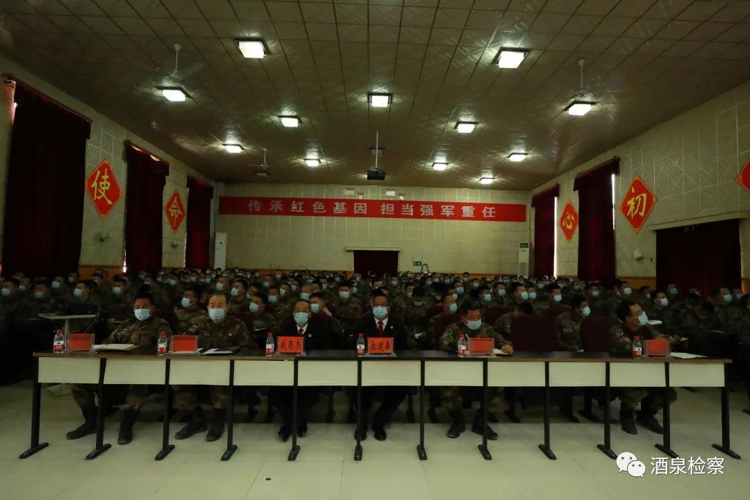 近日,酒泉市检察院干警到中国人民解放军某部队开展送法进军营活动,活动主要宣讲了《民法典》,300余名驻地官兵参加了活动。