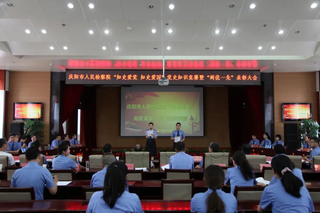 6月29日,庆阳市检察院举办“知史爱党、知史爱国”党史知识竞赛暨市检察院机关“两优一先”表彰大会。该院机关4个党支部在职党员组队参赛,以个人必答题、集体共答题、抢答题、风险题、观众参与题五个环节,评出集体一、二、三等奖和优秀选手。会议还表彰了2020年度市院机关优秀共产党员、优秀党务工作者、先进党支部。
