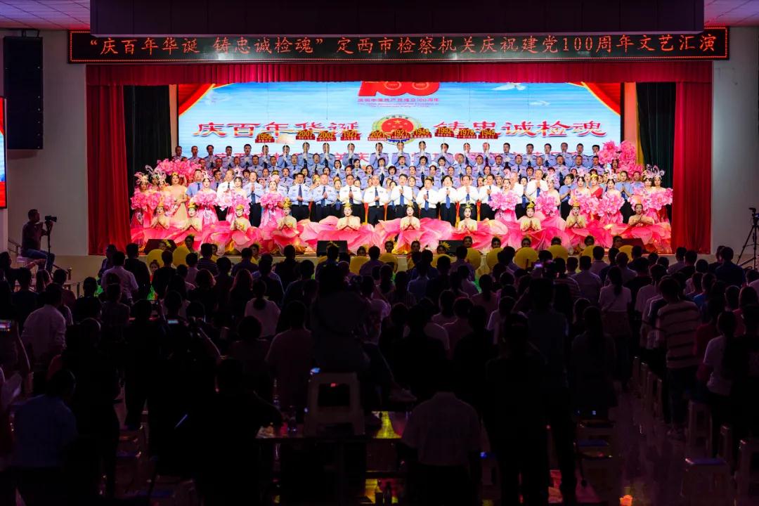 6月27日,定西市检察机关庆祝建党100周年文艺汇演在定西师范高等专科学校举行。文艺汇演以“庆百年华诞 铸忠诚检魂”为主题,分为奋进、坚守、起航三个篇章共18个节目,涵盖合唱、歌舞、情景剧、诗朗诵、快板等多种艺术形式,节目内容中融合了“三个规定”“队伍教育整顿”等相关内容,现场向观众普及相关知识,检察干警们登台演出。该市委常委、市委政法委书记张晓强,市检察院党组书记、检察长石占全为市检察院退休老党员陈生全、王勤颁发“光荣在党50年”纪念章。