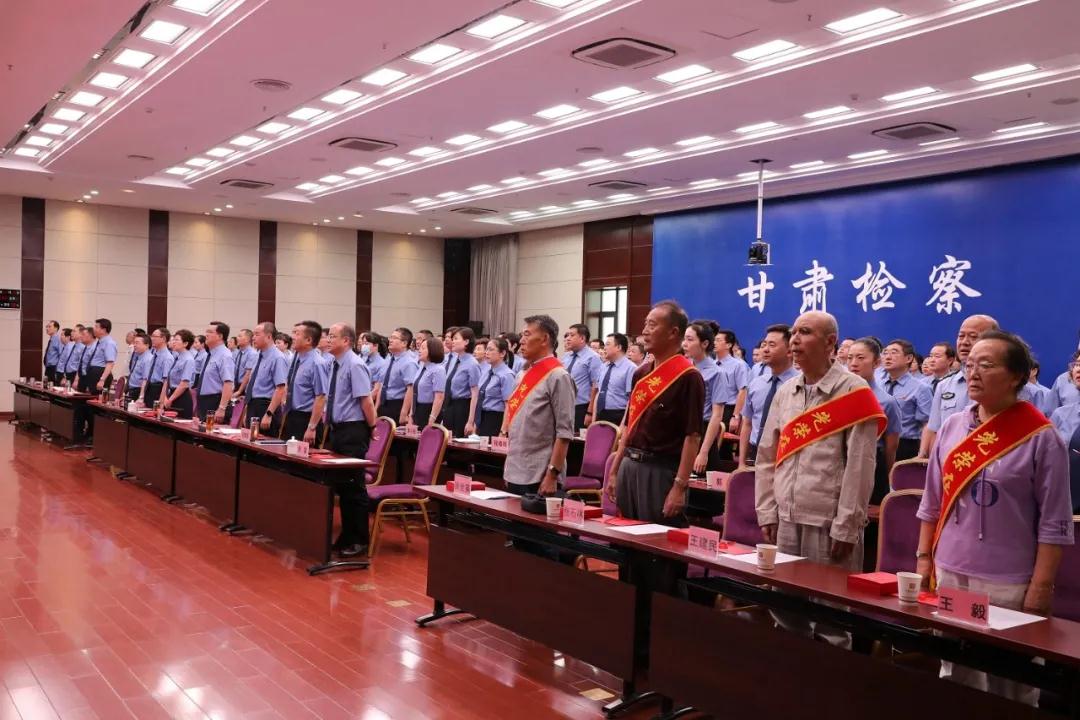 党组书记、检察长朱玉带领全体党员合唱《中华人民共和国国歌》