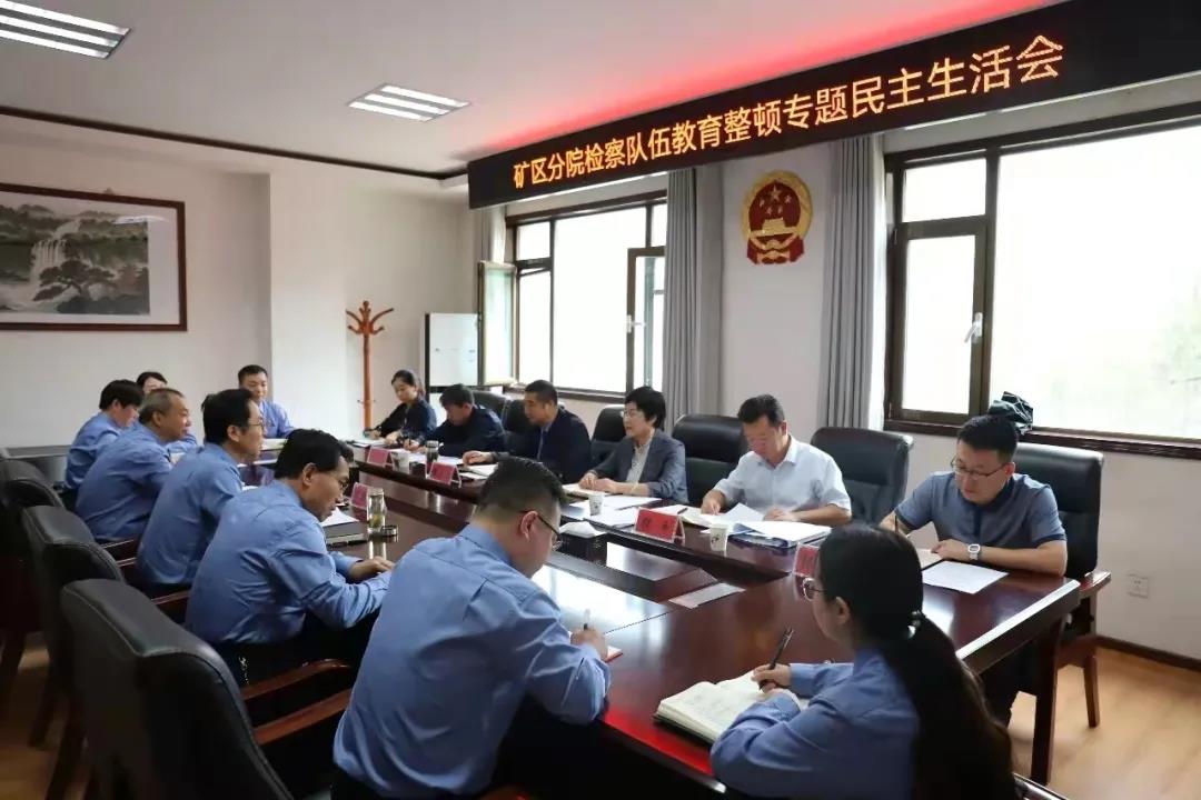 矿区分院党组召开检察队伍教育整顿专题民主生活会。省级第一驻点指导组副组长方书英,省级第一驻点指导组检察院专班成员张平一行到会指导,矿区分院党组成员及各部门负责人参加会议。