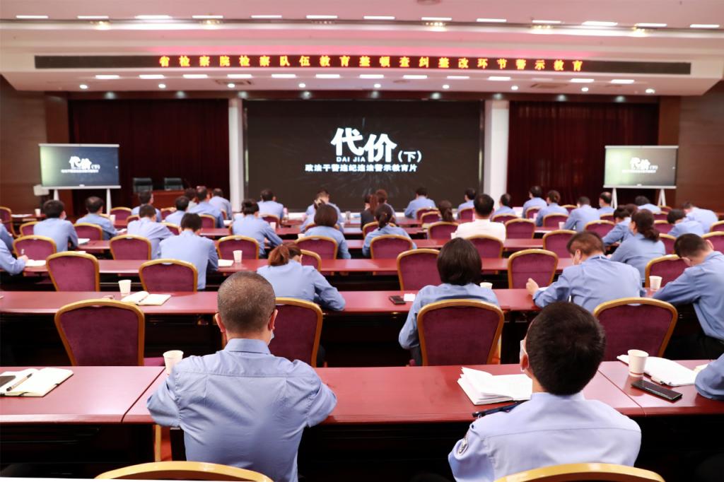 开展检察队伍教育整顿查纠整改环节警示教育,会上观看了警示教育片《代价》,澳门彩