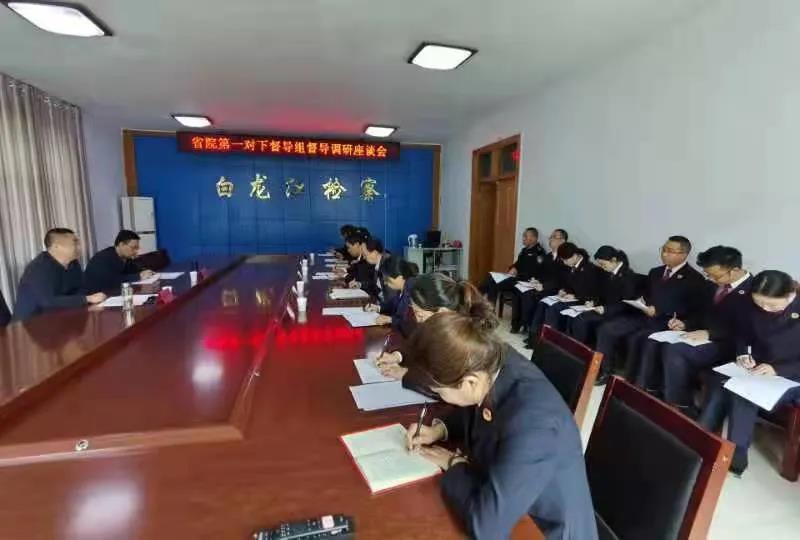 对下第一督导组督导调研白龙江林区检察院检察队伍教育整顿查纠整改环节工作。