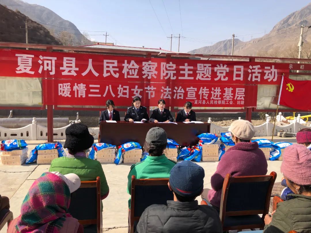 3月3日,夏河县检察院党支部、妇联、工会联合举办“主题党日”活动,深入麻当镇敖赛村开展“暖情三八妇女节 法治宣传进基层”宣讲活动。活动现场,该院干警结合典型案例,用通俗易懂的语言给大家上了一堂生动的法治课。宣讲结束后,该院还为参会妇女群众送上实用的卫生用品表达节日祝福,号召女同胞们依法维权,树立自尊、自信、自强的意识,为打造五无甘南、创建十有家园贡献力量。