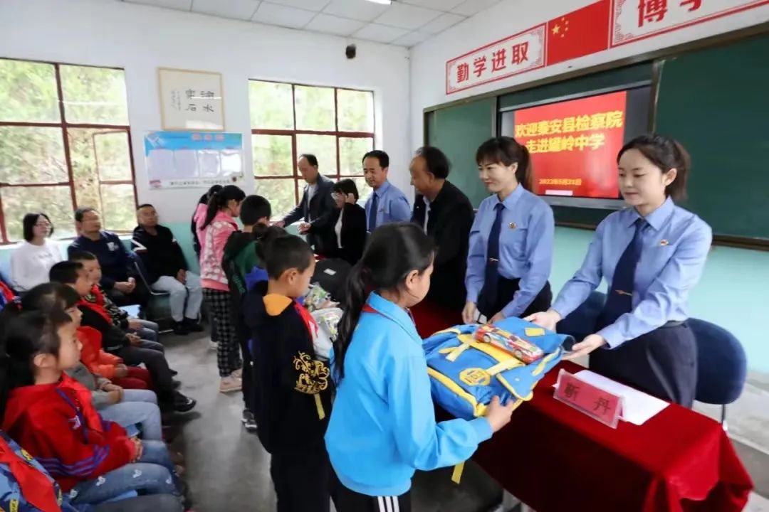 5月31日上午,秦安县检察院在王窑镇罐岭中学举办以“携手落实‘两法’ 共护祖国未来”为主题的检察开放日活动。活动通过法治课堂“云直播”、交流互动、校园座谈会、安全督查等五个环节,向孩子们普及法律知识,提高法治观念和自我保护意识,代表们就如何各尽其责,加强联动,促进形成未成年人综合保护合力提出了意见和建议。县检察院向学生们发放了书包、文具盒等礼物,提前送上儿童节的祝福。