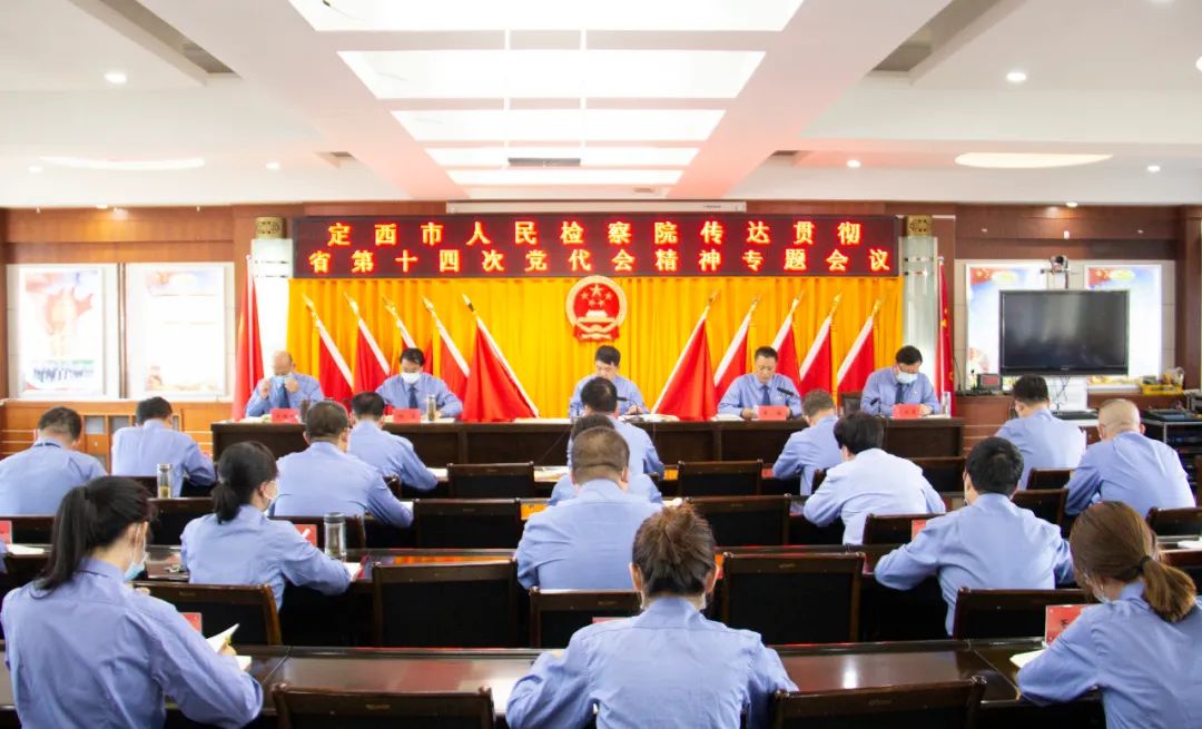 6月2日,定西市检察院召开全院干警大会,传达贯彻省第十四次党代会精神,研究贯彻落实举措。会议指出,要增强服务大局的决心和信心,更加注重能动履职,紧紧围绕会议部署的目标任务,认真落实市委和上级院决策部署,在强化服务保障上做功课、下功夫。要做优做强法律监督主责主业,切实提升办案质效,抓好业务指标提升,持续深化监督履职创新,推动“四大检察”全面协调充分发展。要持续增强履职的能力和素质,稳步夯实发展根基。要深刻领会会议的精神实质,抓好学习宣传贯彻,丰富载体、创新方法,营造浓厚的学习宣传氛围,切实把党代会精神传达到每一名干警,推动会议精神在定西检察机关落地生根,以优异成绩迎接党的二十大胜利召开。