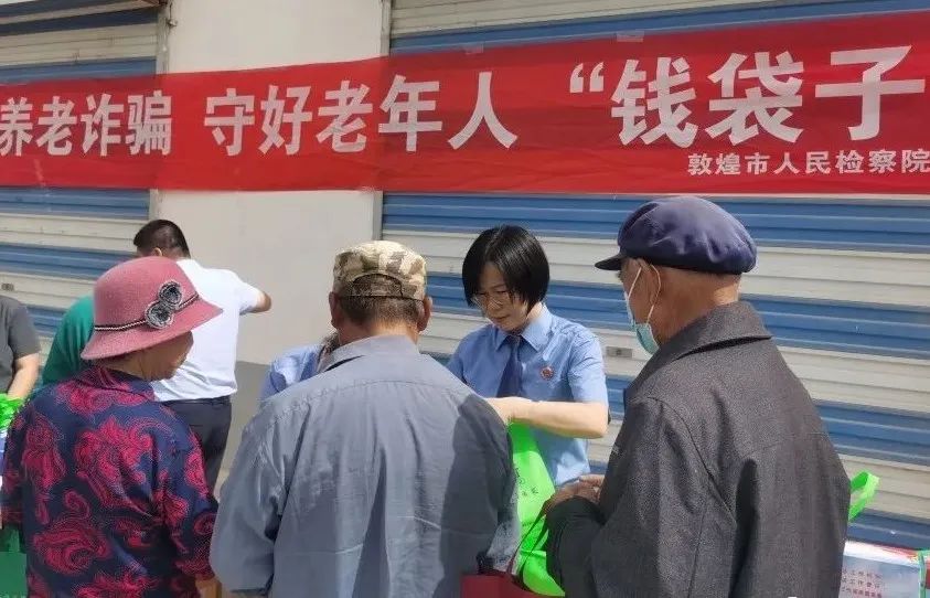 近日,敦煌市检察院联合相关部门深入黄渠镇集市,开展“精准打击养老诈骗,守好老年人‘钱袋子’”宣传活动,检察干警向老年群众介绍识骗、防骗技巧,并以案释法,对常见的“养生保健”“投资养老”“以房养老”“免费旅游”等诈骗手段进行详细讲解,提醒老年人及亲属要提高警惕,加强防范,守好“养老钱”。