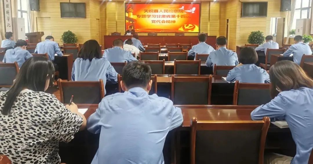 6月2日,天祝县检察院召开专题会议,传达学习省第十四次党代会精神。会议指出,要提高政治站位,兴起学习热潮,推动会议精神的学习宣传贯彻走深走实。要立足检察职能,深入开展最高检“质量建设年”、市委“干部能力素质提升年”、县委“能力作风建设年”活动,依法能动履行法律监督职责,把主责主业做优做强。要加强党的建设,强化党建引领,结合实际细化“党建+”工作措施,引导依法能动履行检察职能,以优异的成绩迎接党的二十大胜利召开。