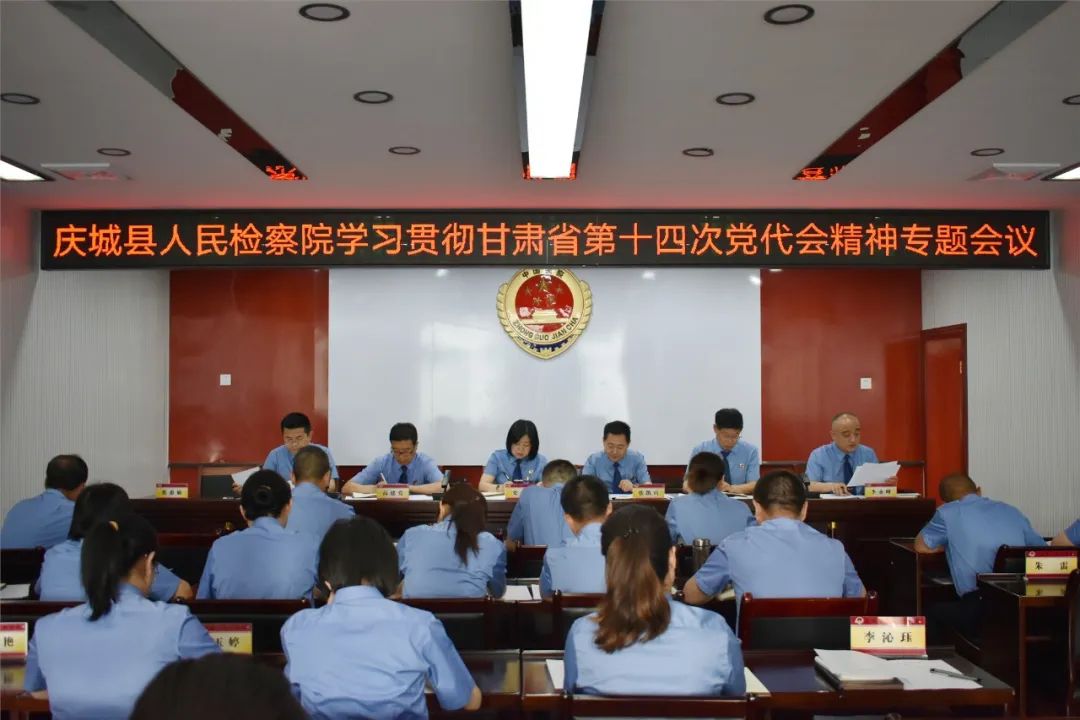 近日,庆城县检察院依托党组理论学习中心组(扩大)会议、全体干警大会和主题演讲比赛的形式,集中学习贯彻省第十四次党代会精神。会议指出,院党组成员要带头示范引领,依法担当履职,统筹发挥四大检察职能,持续推进庆城检察事业纵深发展,要坚持抓班子带队伍,持续推行“五个过硬”检察队伍建设。全体干警要以会议精神为引领,凝聚思想共识,切实转变检察工作作风,强化业务知识,认真履职尽责,为全县经济社会高质量可持续发展谱写检察新篇章,以实际行动迎接党的二十大胜利召开。