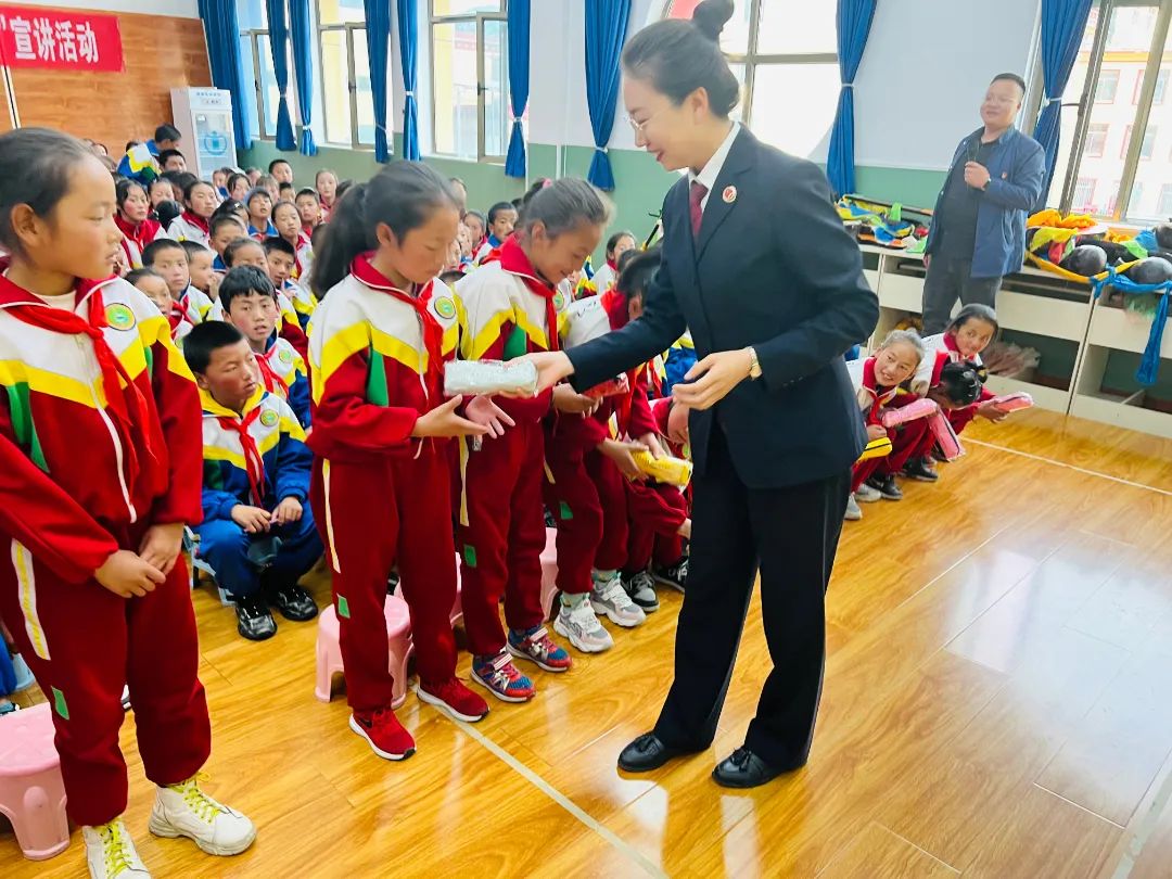 检察干警还以“考考你”等环节与孩子们亲切互动,给孩子们赠送了学习用品,希望他们好好学习,健康成长。