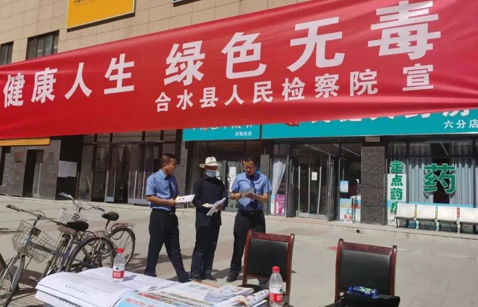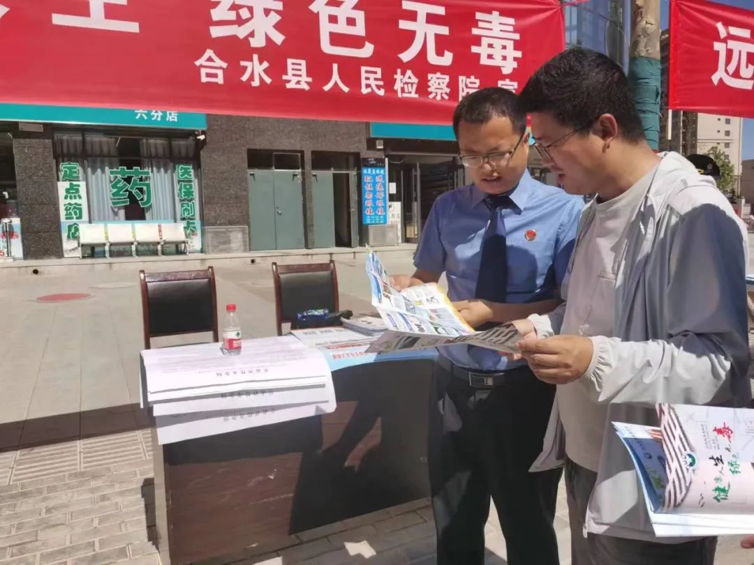 6月24日,合水县检察院开展以“健康人生 绿色无毒”为主题的禁毒宣传活动,检察干警通过发放禁毒宣传资料、讲解法律法规,宣传吸毒、贩毒的危害,提高群众的禁毒、拒毒、防毒意识。