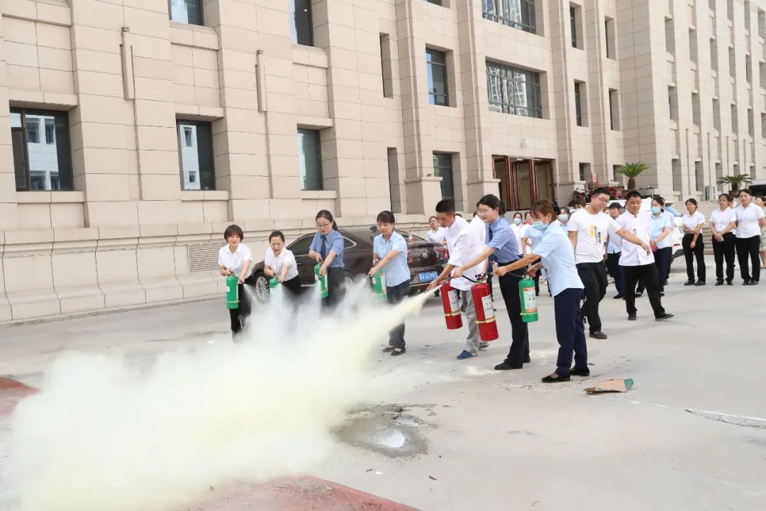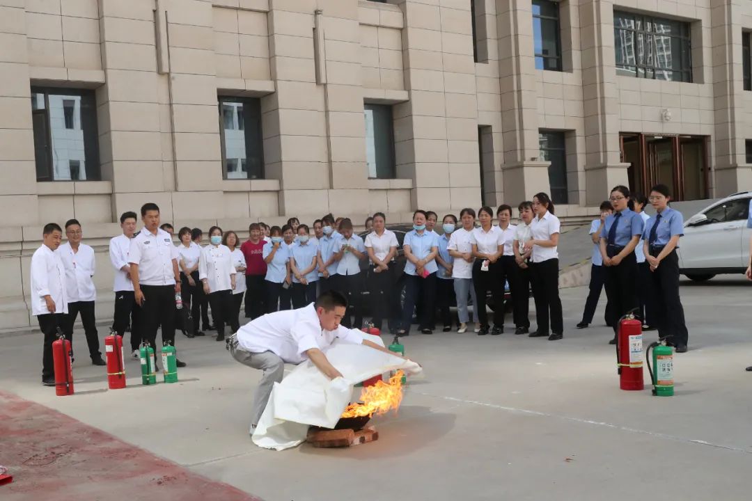 在模拟起火点起火环节,员工采用灭火器进行初期火灾扑救。