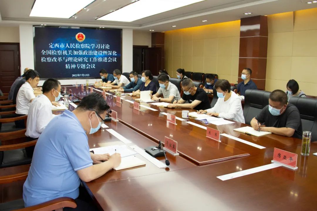 7月13日,定西市检察院召开会议,对张军检察长在全国检察机关加强政治建设暨深化检察改革与理论研究工作推进会上的讲话精神进行了深入学习讨论,与会干警围绕会议精神畅谈感悟体会,并结合工作实际提出贯彻落实的具体思路和工作措施。会议要求,全市检察机关要认真学习、深刻领会,切实把会议精神与定西检察工作实际结合起来,始终保持狠抓落实的使命感、责任感和紧迫感,细化、实化、强化各项工作举措,不断推动定西检察工作高质量发展。