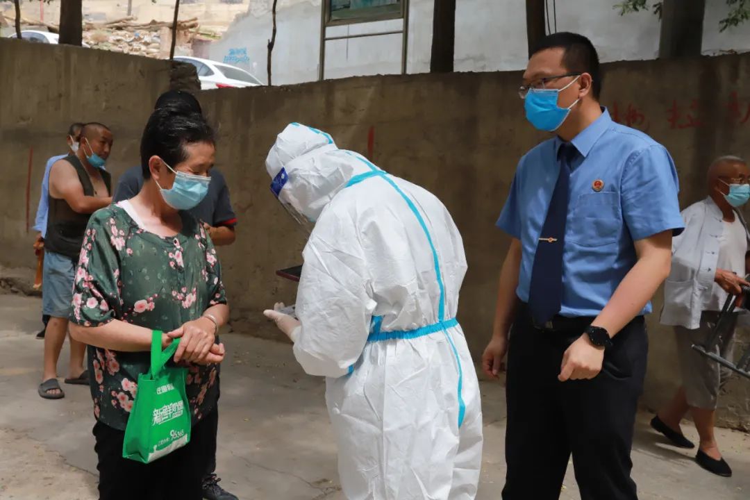康乐县检察院共派出40余名干警加入志愿者服务队伍,担负起城东社区党组织分配的各项工作任务,配合网格员对小区逐一入户登记排摸,对小区出入人员扫码登记,上门逐门逐户劝导居民核酸检测,同时协助配合医护人员对重点人员进行核酸检测,用检察干警的实际行动践初心、办实事。