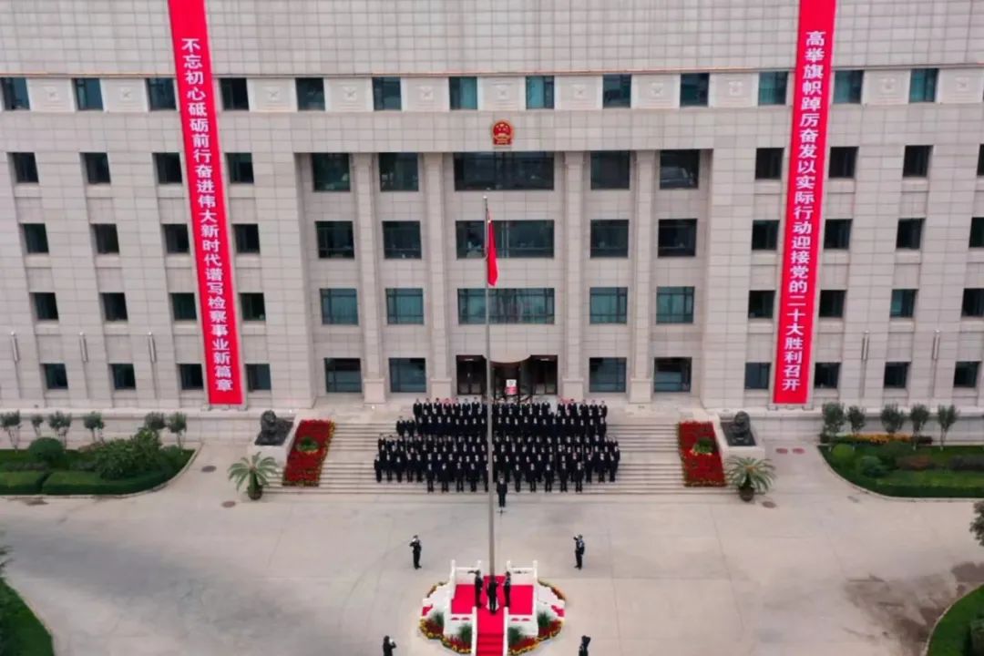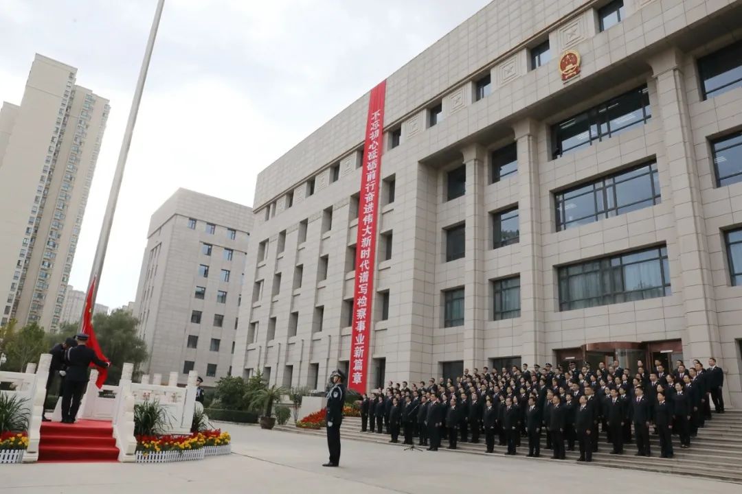 身着“检察蓝”心向“中国红”。上午9点半,朱玉宣布升旗仪式开始。在嘹亮的口号声中,英姿勃发的国旗护卫队排着整齐的队列,迎着晨风,迈着铿锵有力的步伐,护卫着国旗走向旗台。当雄壮的《义勇军进行曲》响起,干警们齐声高唱激昂的中华人民共和国国歌,升旗手振臂一挥,鲜艳的五星红旗冉冉升起,迎风飘扬。检察干警们肃然而立,向五星红旗行注目礼,祝福祖国母亲生日快乐,由衷表达热爱中国共产党、热爱社会主义、热爱祖国、热爱人民的无限情怀。嘹亮的国歌声响彻全场,全体检察干警仿佛置身风云激荡的革命年代中,73载栉风沐雨,73载波澜壮阔,73载辉煌成就,在中国共产党的坚强领导下,中华民族迎来从站起来、富起来到强起来的历史飞跃,开创了举世瞩目的中国奇迹,向第二个百年奋斗目标和中华民族伟大复兴的中国梦昂首迈进。