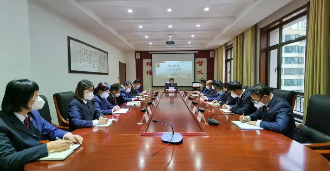 10月21日,华池县检察院党组书记、检察长于恒学主持召开党组中心组学习会,专题学习党的二十大精神。会议要求,要深刻领悟党的二十大报告精髓要义,认真领会报告中提出的一系列新思路、新论断、新战略、新举措,并结合省市县委及上级检察院的安排部署,对检察工作的思路和目标进行再审视、再谋划,真正做到学深悟透做实。要不断巩固学习成果,强化能动履职,深耕主责主业,始终坚持以人民为中心,不断提升新时代法律监督能力水平,踔厉奋发,勇毅前行,抓紧抓实年底各项任务的收官冲刺。