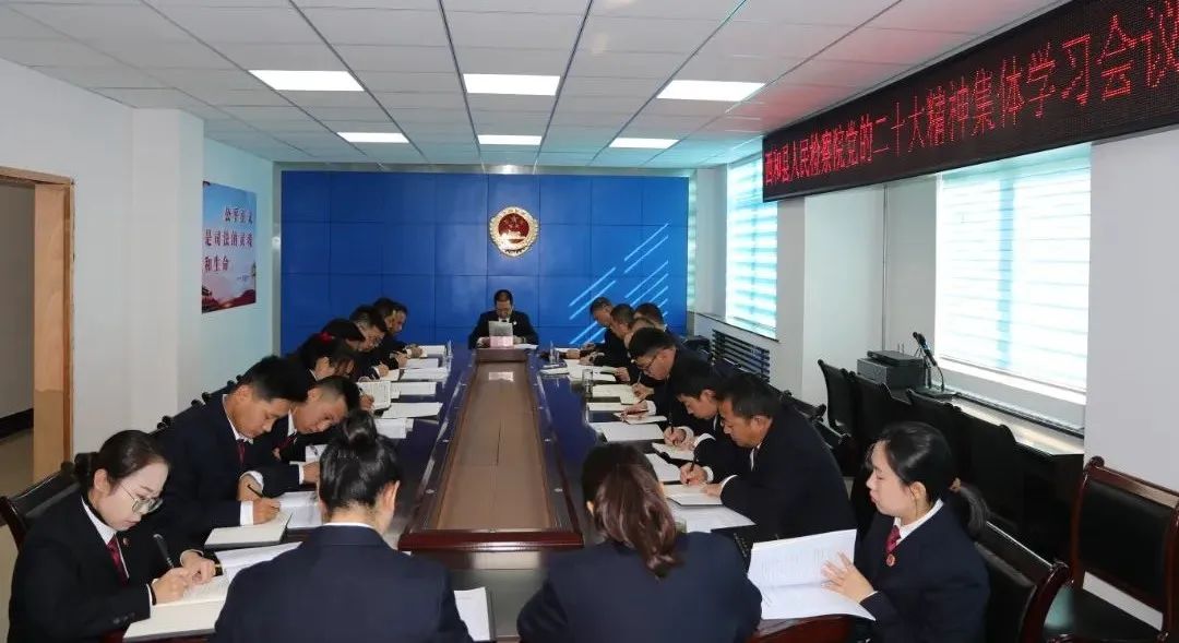 10月31日,西和县检察院党组书记、检察长郭玉刚主持召开全体干警大会,系统学习了党的二十大报告原文,安排部署学习宣传贯彻工作。会议要求,要结合检察工作实际,有针对性的制定学习方案,明确重点学习任务,丰富学习形式。要突出工作重点,以检察宣传和文化建设为抓手,弘扬检察正气、提升队伍形象。要持续加强纪法教育,巩固政法队伍教育整顿成果,始终保持检察干警清正廉洁的政治本色,锻造一支忠诚干净担当的检察铁军。