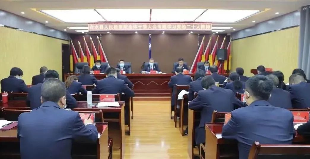 10月31日,合水县检察院党组书记、检察长曹建梓主持召开全体干警大会,专题学习党的二十大精神。会议要求,要学深悟透精神要义,以“六个必须坚持”为指引,聚焦党的二十大作出的战略规划和具体部署,切实找准依法能动履职的切入点和着力点,心无旁骛做好自己的事。要充分发挥“关键少数”以上率下、领学促学作用,在教学相长中持续深化对党的二十大精神的学习贯彻。青年干部要牢记空谈误国、实干兴邦,主动担当、认真作为,做推进中国式现代化建设检察服务供给侧的“源头活水”。
