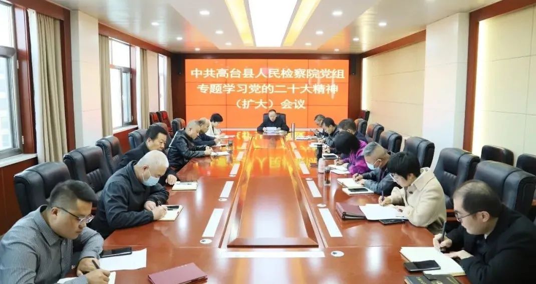 10月19日,高台县检察院党组书记、检察长郭永旺主持召开党组(扩大)会议,专题传达学习党的二十大精神并提出贯彻落实措施。会议要求,要深刻学习领会党的二十大报告精神实质,不断提高政治判断力、政治领悟力、政治执行力。要找准结合点、着力点,切实把党的二十大精神落实到检察工作全过程、各方面,坚持依法能动履职,注重诉源治理、标本兼治,坚持敢于监督、善于监督,不断强化“四大检察”法律监督职能,自觉以检察工作的高质量发展服务经济社会高质量发展。