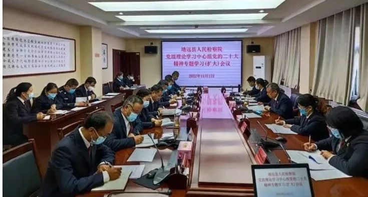 近日,靖远县检察院党组书记、检察长高兴明主持召开党组理论学习中心组(扩大)会议,传达学习党的二十大精神,研究部署近期重点工作。会议要求,要开展多形式、分层次、全覆盖的学习宣传活动,真正做到学深悟透、学有成效。要在学以致用、学用结合上下功夫,充分发挥“四大检察”职能,努力让人民群众有更多的获得感、幸福感、安全感。要在服务全县发展大局上下功夫,坚持把维护社会稳定作为首要任务,努力提升检察服务质效,为靖远县经济社会高质量发展提供有力的司法保障。