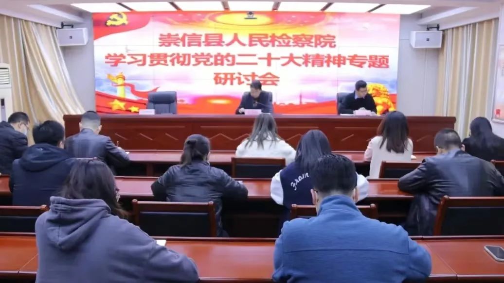 近日,崇信县检察院召开党的二十大精神专题研讨会,深入学习领会党的二十大精神。会议要求,要深入领会党的二十大精神的核心要义,不断提高政治判断力、政治领悟力、政治执行力。要深入贯彻落实《中共中央关于加强新时代检察机关法律监督工作的意见》和省委、市委《实施意见》,将党的二十大精神落实到检察工作的方方面面,全面协调充分履行“四大检察”“十大业务”,尽心尽力履职尽责,让人民群众在每一件小案、小事中感受到公平正义。
