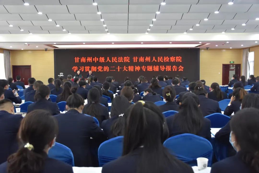 11月4日,党的二十大代表、甘南州特殊教育学校校长鲁毛才让为甘南州法检两院全体干警作党的二十大精神专题学习辅导。