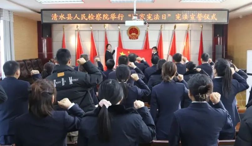 在第九个国家宪法日来临之际,清水县检察院举行“国家宪法日”宣誓仪式。大家一致表示,要时刻牢记这一光荣时刻,自觉履行宪法法律赋予的职责使命,切实秉持司法为民初心,担当作为、踔厉奋发,以实际行动践行对党和人民的忠诚誓言。