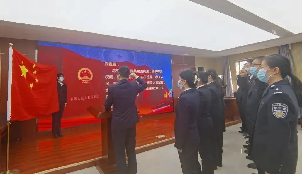 12月2日,皋兰县检察院举行宪法宣誓仪式。全体宣誓人员在检察长娄成龙的带领下,紧握右拳,面向国旗许下庄严承诺。干警们纷纷表示,将始终牢记誓言,忠实履行职责,坚守法治信仰,恪守法治原则,忠诚司法事业,争做无愧于党、无愧于国家、无愧于人民、无愧于法律、无愧于时代的人民满意的检察官。