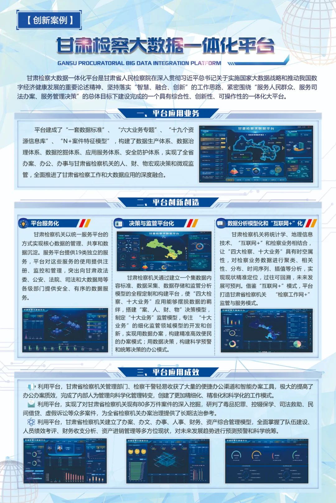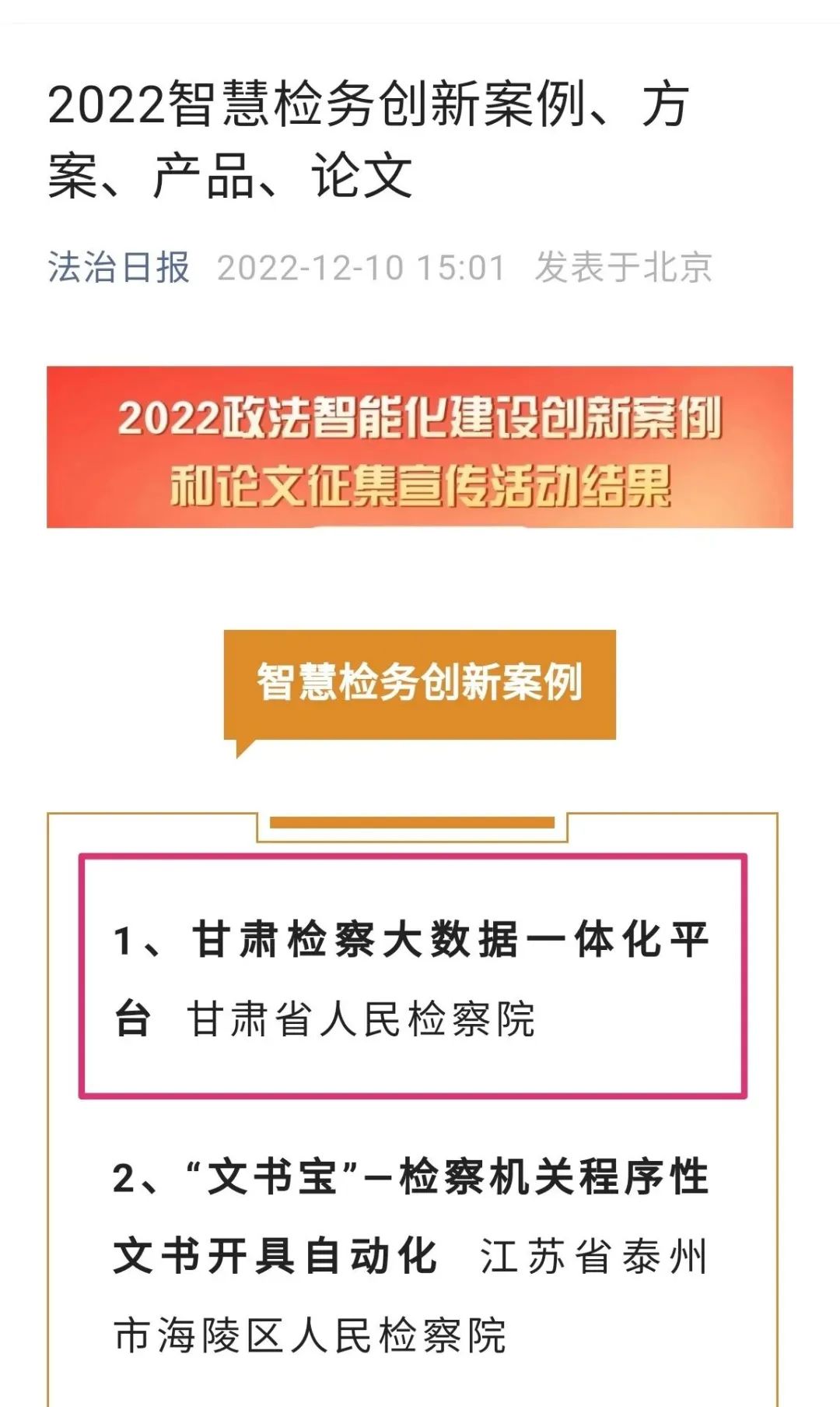 大数据一体化平台获评“智慧检务创新案例”,位列第一。