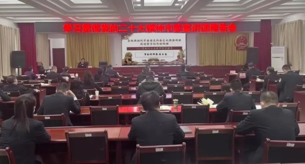 陇西县检察院邀请县委“凝心铸魂”宣讲团讲师为全院干警宣讲党的二十大精神,重点从大会主题、实践基础、开辟马克思主义中国化时代化新境界、全面建设社会主义现代化国家的工作要求等多个方面阐述了党的二十大报告所传达的精神内涵。
