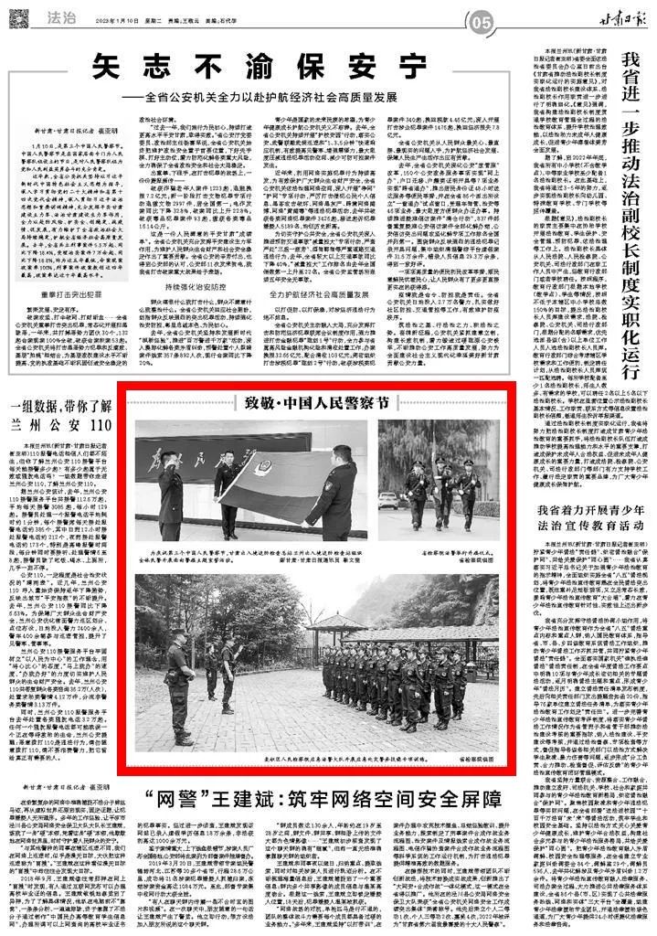 2023年1月10日,甘肃日报五版刊发图片新闻《致敬·中国人民警察节》。