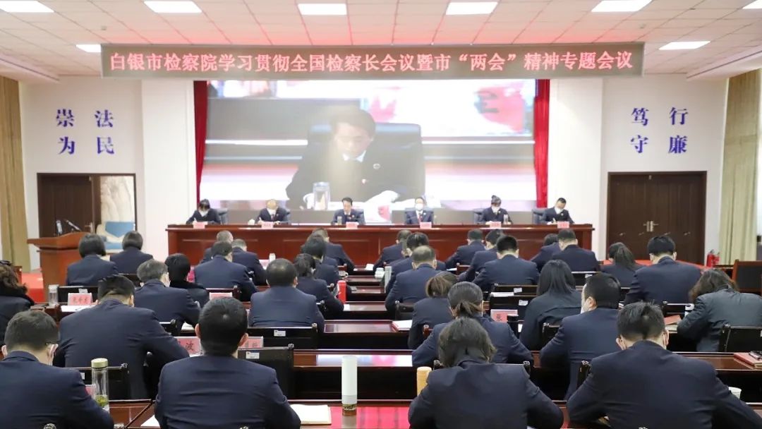 1月11日,白银市检察院组织召开全市检察机关学习贯彻全国检察长会议精神专题会,该院党组书记、检察长马军要求,要坚定政治担当,强化责任使命,统筹联动推进,抓好会议精神贯彻落实。要坚持依法能动履职,自觉把大局所需和检察所能结合起来,找准切入点和结合点,高位跟进保障,聚力攻坚落实。要不断强化自身建设,融合推进政治建设、业务建设、队伍建设和纪律作风建设,为检察工作行稳致远奠定坚实基础,扎实推动检察各项工作全面协调充分发展。