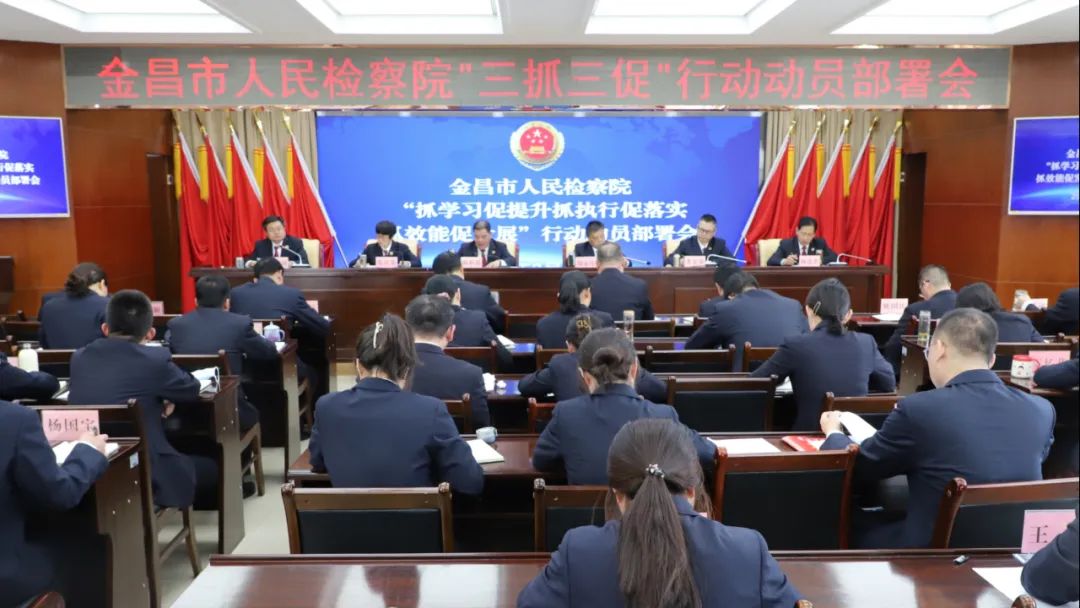 2月21日,金昌市检察院召开“三抓三促”行动动员部署会。会议要求,要提高政治站位,把“三抓三促”行动作为推动金昌检察工作现代化的重要载体,聚焦重点难点,用心用情做好为民实事。要紧密结合主题教育和“铸忠诚警魂”活动,压实工作责任,整体推进、一体落实。要聚焦依法能动履职,重点实施助力平安金昌建设、优化法治化营商环境、提升法律监督质效、生态环境司法保护、助力乡村振兴、防范化解风险、助推社会治理、深化司法改革、加强内部管理和基层基础建设“十大提升行动”,全方位推动金昌检察工作现代化建设。