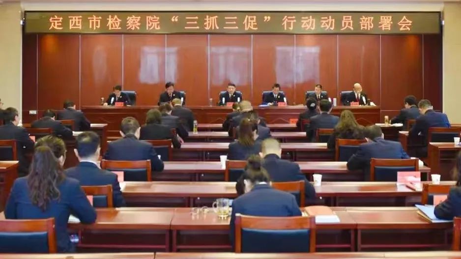 2月22日,定西市检察院召开“三抓三促”行动动员部署会,该院党组书记、检察长石占全出席会议并讲话。会议要求,要提高政治站位,对标对表“能力为先、执行为要、效能为王”导向,在学习上下功夫、在执行上铆足劲、在效能上见真章,推动形成比学赶超、大抓落实、争先进位的浓厚氛围。要扫除作风顽疾,激发争先进位的激情活力,突出解放思想转变理念,以新理念、新思路、新机制、新举措来谋划和推动各项检察工作。要聚焦关键节点,以求极致的标准推动工作落实,始终坚持问题导向,跟着问题走、奔着问题去、盯着问题改,找出差距,深挖根源,着力破解检察工作现代化瓶颈制约。