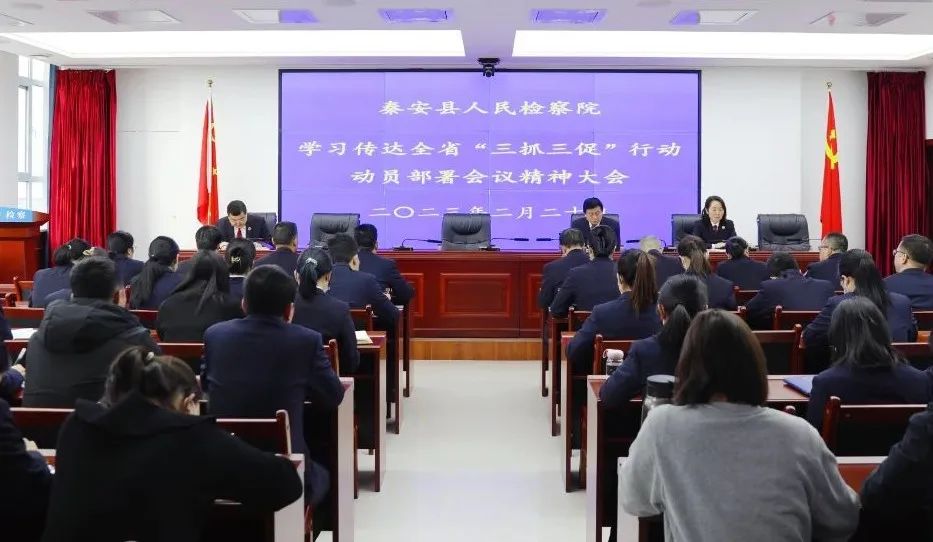 2月20日,秦安县检察院召开会议,学习传达全省“三抓三促”行动动员部署会议精神。会议要求,要提高认识,将“三抓三促”行动与主题教育、“铸忠诚警魂”活动相结合,深入学习,提高干警政治素养和业务能力。要健全工作机制,细化工作措施,压实各方责任,强化常态调度,统筹推动各项任务落地见效。要围绕服务中心大局、聚焦主责主业、转变机关作风和锻造过硬队伍,找准短板弱项,直面问题差距,制定务实举措,不折不扣落实,努力实现各项检察工作争先进位。