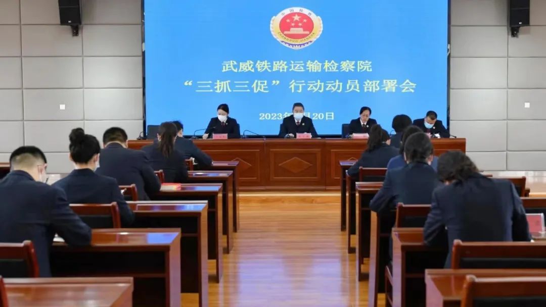 2月20日,武威铁路运输检察院召开“三抓三促”行动动员部署会。该院党组书记、检察长张守新出席会议并讲话。会议要求,要提高政治站位,紧盯目标任务,周密安排部署,强化组织领导,制定任务清单,建立工作台账,确保行动整体推进有力度、阶段工作有亮点、服务发展有成效。要全面履行法律监督职能,坚持从服务大局出发,深耕主责主业,全力维护国家政治安全和社会大局稳定,促进社会治理、防范化解风险。要加大能力作风建设,提高队伍专业化水平,按照“忠诚、主动、极致、高效、规范、廉洁”的要求,锻造新时代检察铁军。