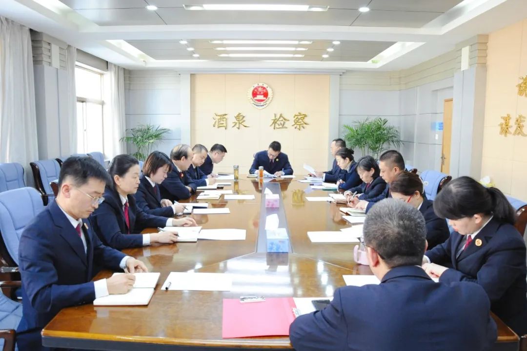 3月1日,酒泉市检察院党组书记、检察长王烨主持召开党组(扩大)会议,专题传达学习全省检察长会议精神。会议要求,要准确把握检察工作现代化的深刻内涵和时代要求,以“四个提升”为导向,以“五个深度融合”为抓手,依法能动履行检察职能,全力推进酒泉检察工作现代化。要以开展“三抓三促”行动、“铸忠诚警魂”活动为契机,结合“大学习大调研大讨论”活动,持续加强作风建设,狠抓落实提效能。要引导检察干警树立争先进位意识,以思想破冰的魄力、赶超一流的追求、加速进位的姿态和争当闯将的激情,攻坚克难、加压奋进,推动全省检察长会议部署的工作任务落细落实。