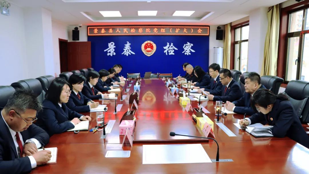 2月28日,景泰县检察院党组书记、检察长席大伟主持召开党组(扩大)会,迅速传达学习全省检察长会议精神。会议要求,要把学习全省检察长会议精神与学习党的二十大精神相结合,与“三抓三促”行动相结合,组织全院干警深入学习、认真领会、融会贯通,推动会议精神落到实处。要深刻把握好检察工作现代化的深刻内涵、时代要求、目标任务和方法路径,谋划工作举措,压实工作责任,改进工作作风,创新方式方法,提高履职效率,为景泰经济社会现代化建设贡献检察力量。